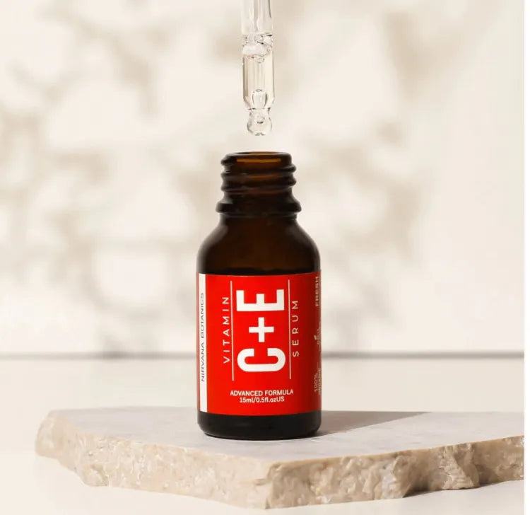 Advanced Skincare Formula: Discover the Nirvana Botanics Vitamin C & E Serum, a powerful blend designed to rejuvenate and revitalize your skin.